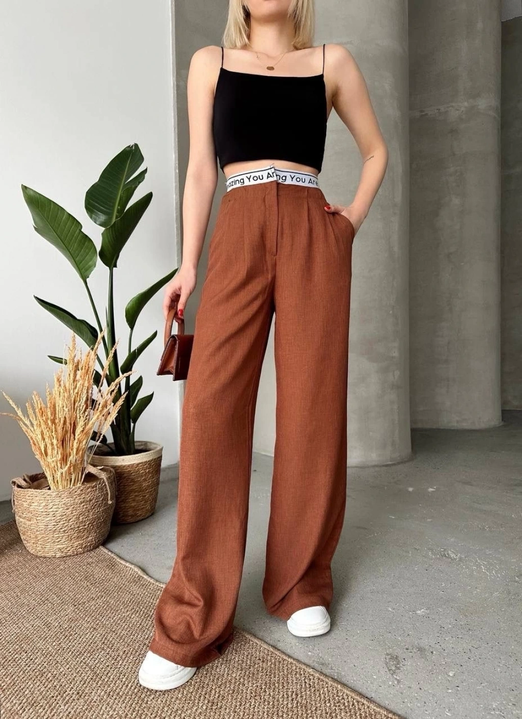 İspanyol yırtmaçlı paça deri pantolon bej hn