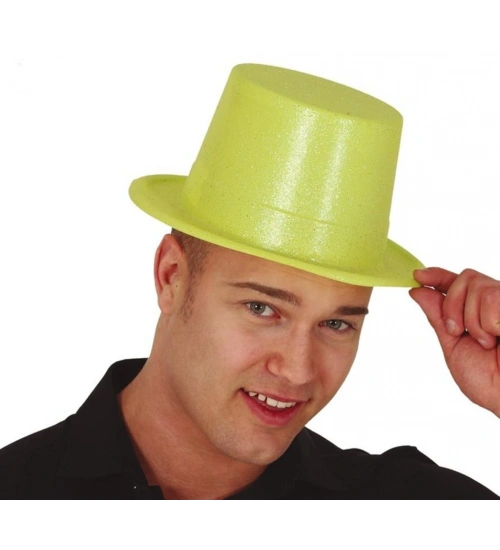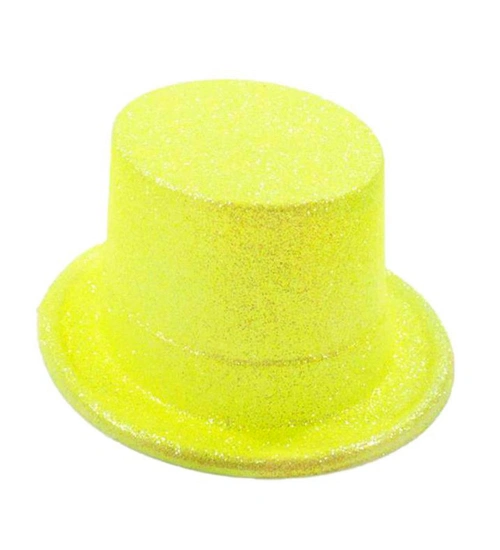 Floresan Sarı Renk Simli Uzun Fötr Melon Şapka 12 cm