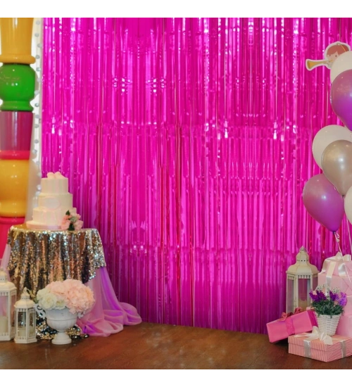 Fuşya Renk Ekstra Metalize Parlak Saçaklı Arka Fon Perde İthal A Kalite 1x2 Metre NessiWorld