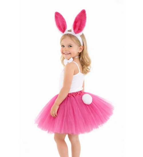 Fuşya Tavşan Kostüm Seti Kız Çocuk – Tütü Etekli 4 Parça