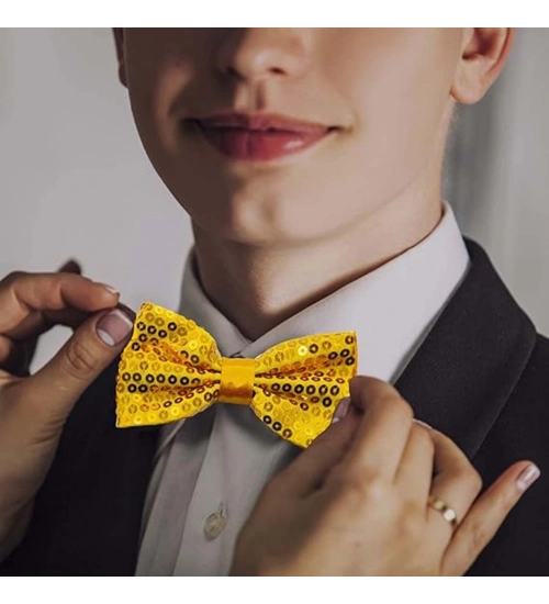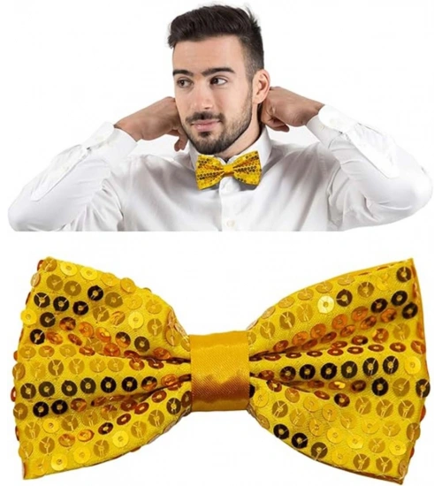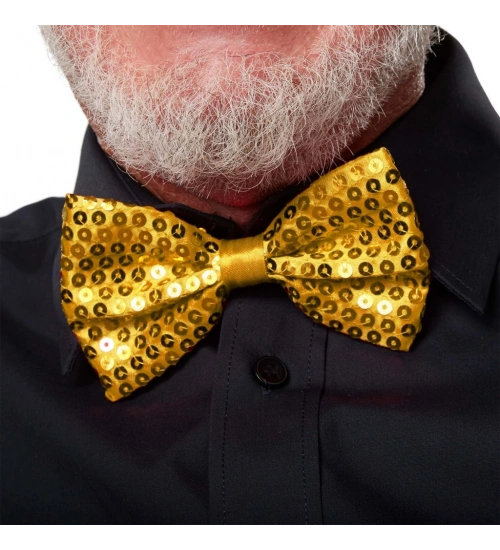 Gece Işıltısı Altın Payetli Pullu Papyon 7x2 cm