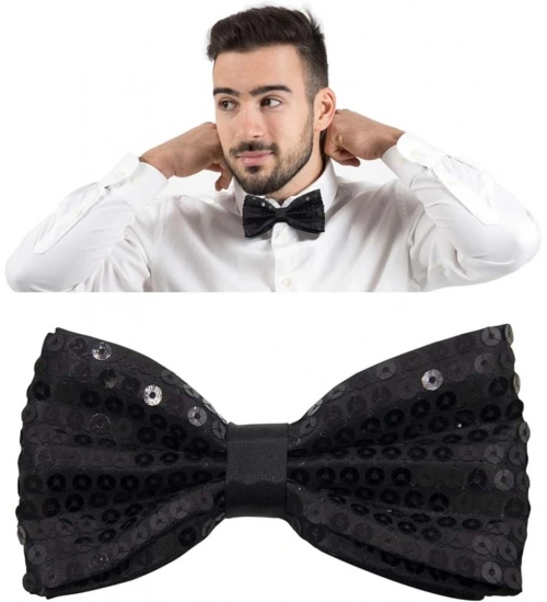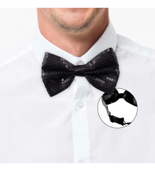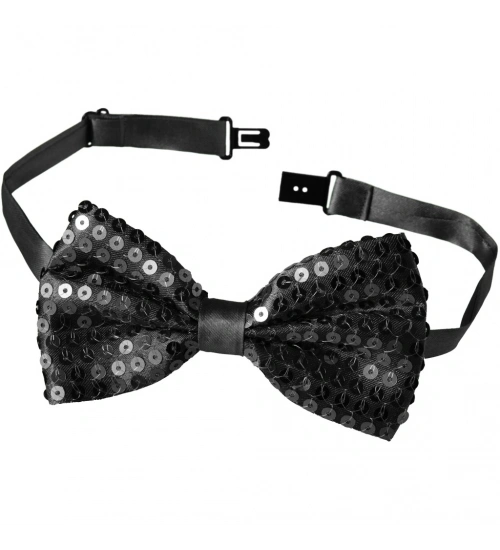 Gece Işıltısı Siyah Payetli Pullu Papyon 7x2 cm