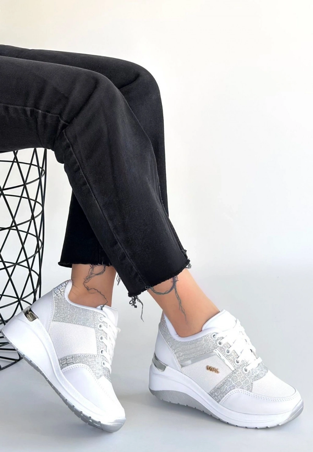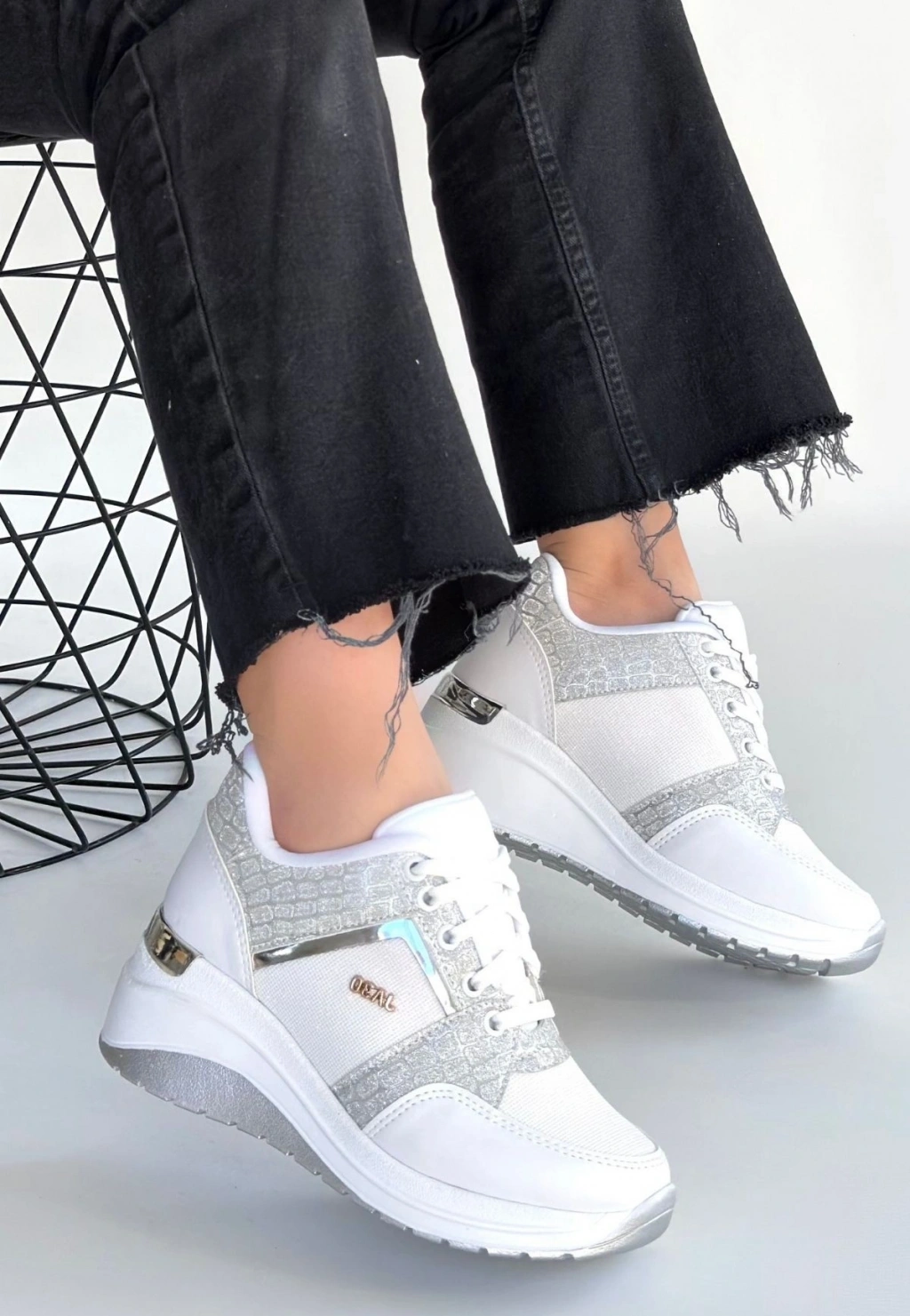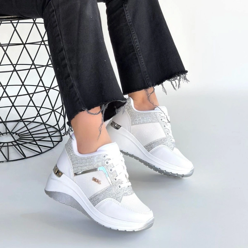 Rimay Beyaz Cilt Boncuk İşlemeli Spor Ayakkabı