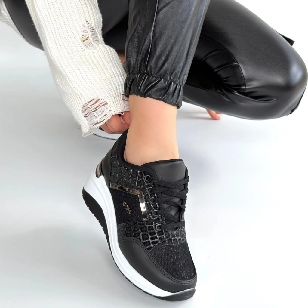Slar Siyah Cilt Simli Bağcıklı Spor Ayakkabı
