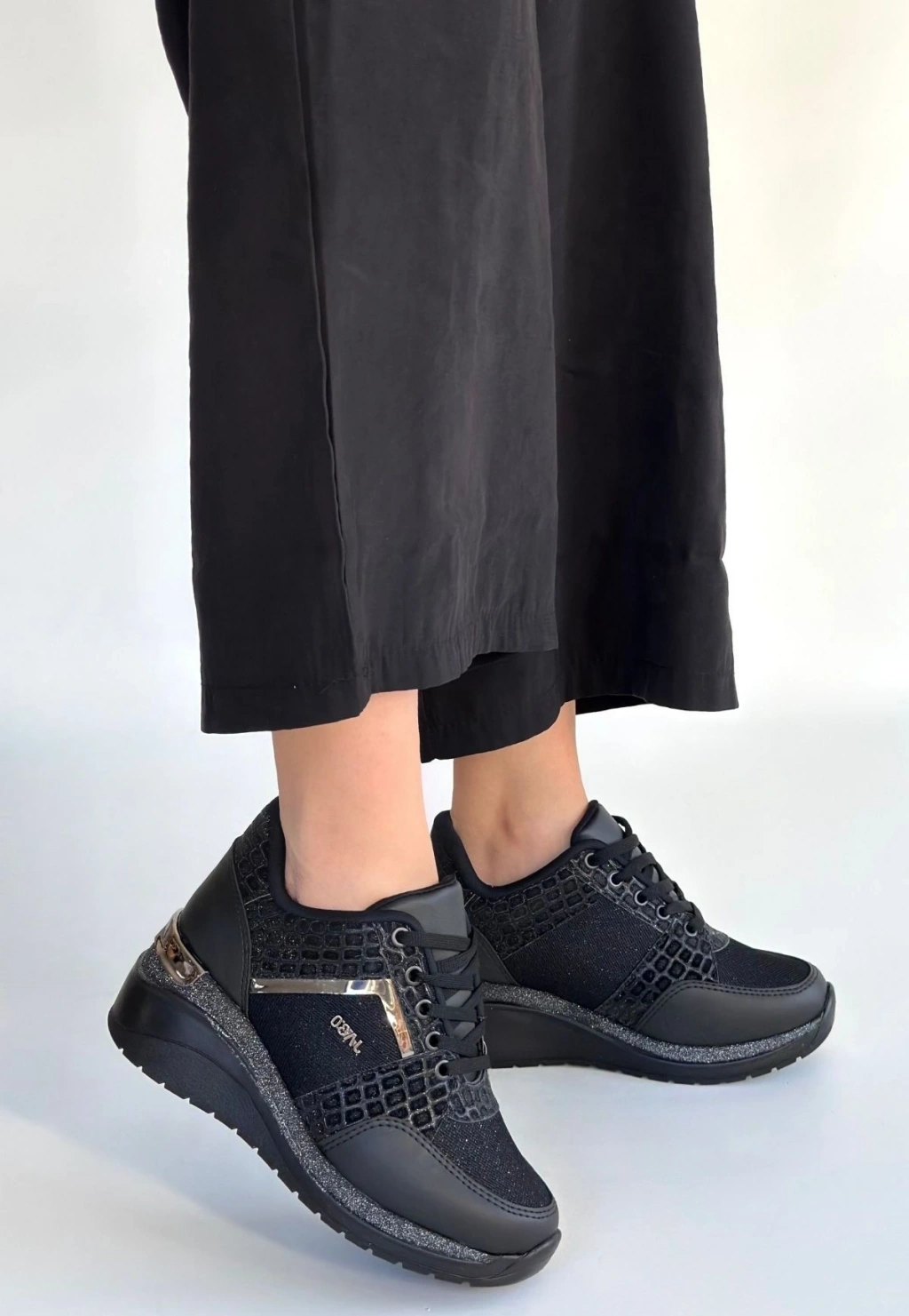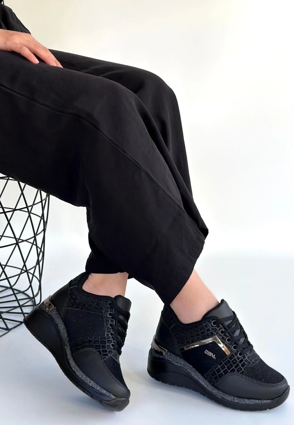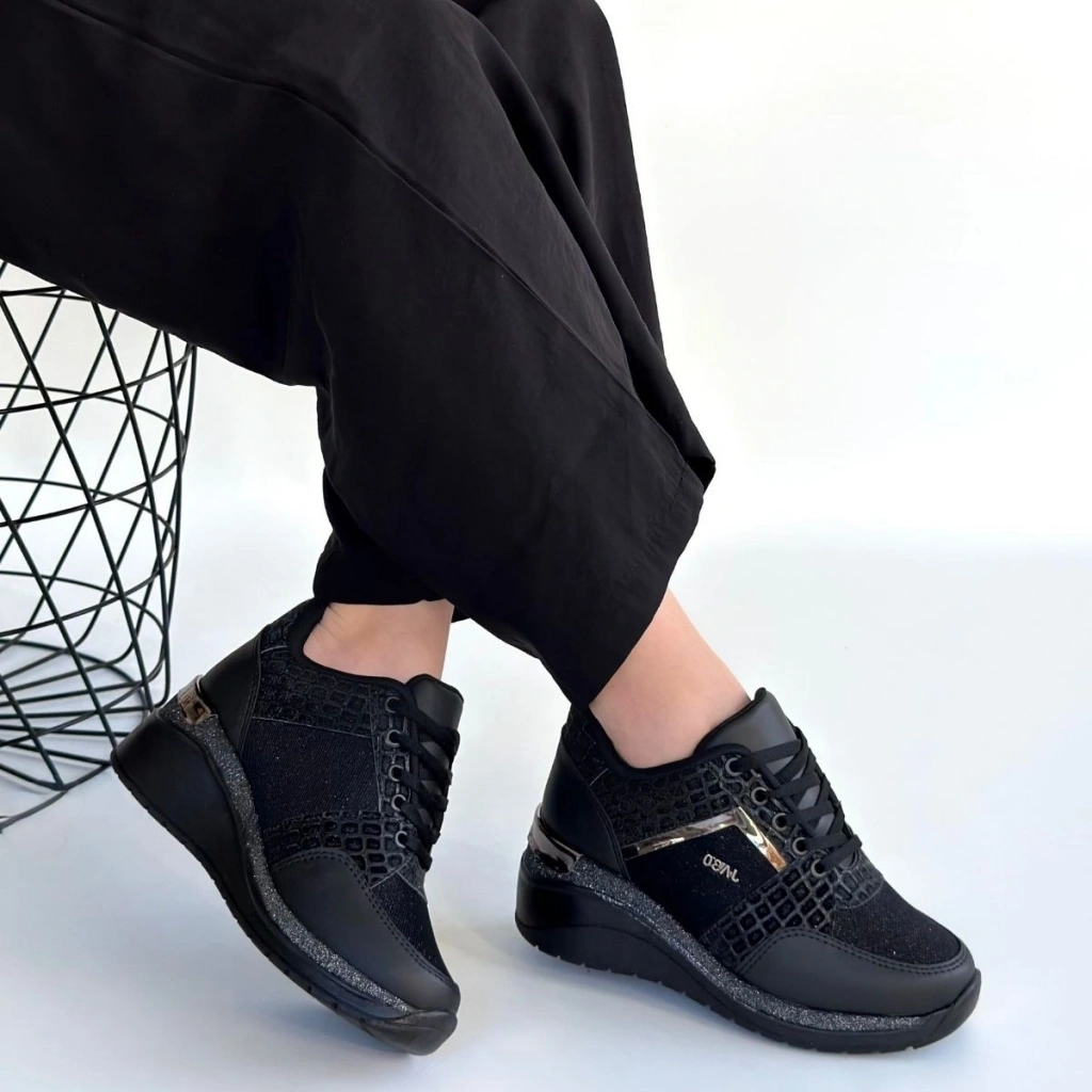 Rimay Siyah Cilt Boncuk İşlemeli Spor Ayakkabı
