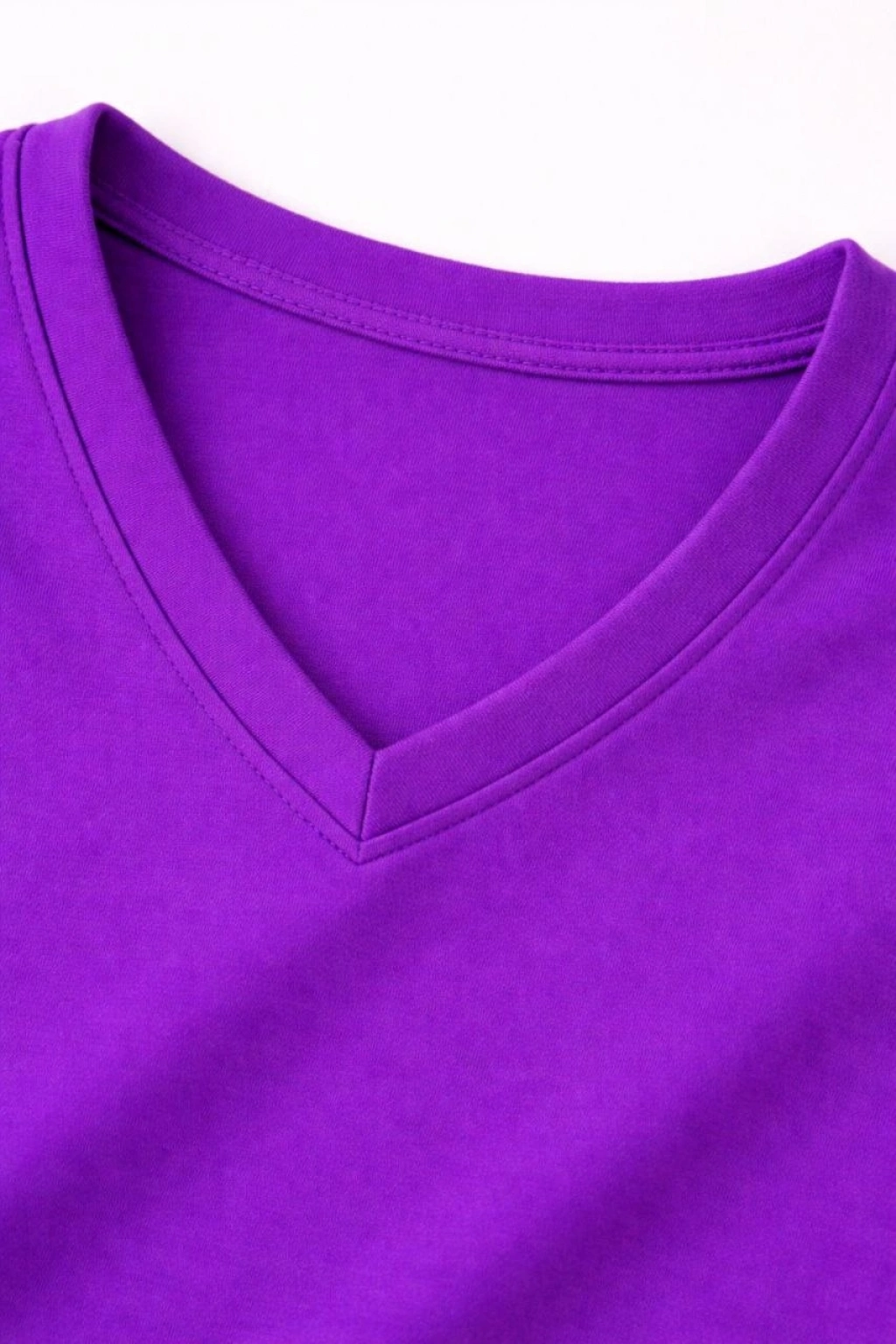 Genç Kız Çocuk V Yaka Tişört Yazlık Model Günlük Basic Body - Mor