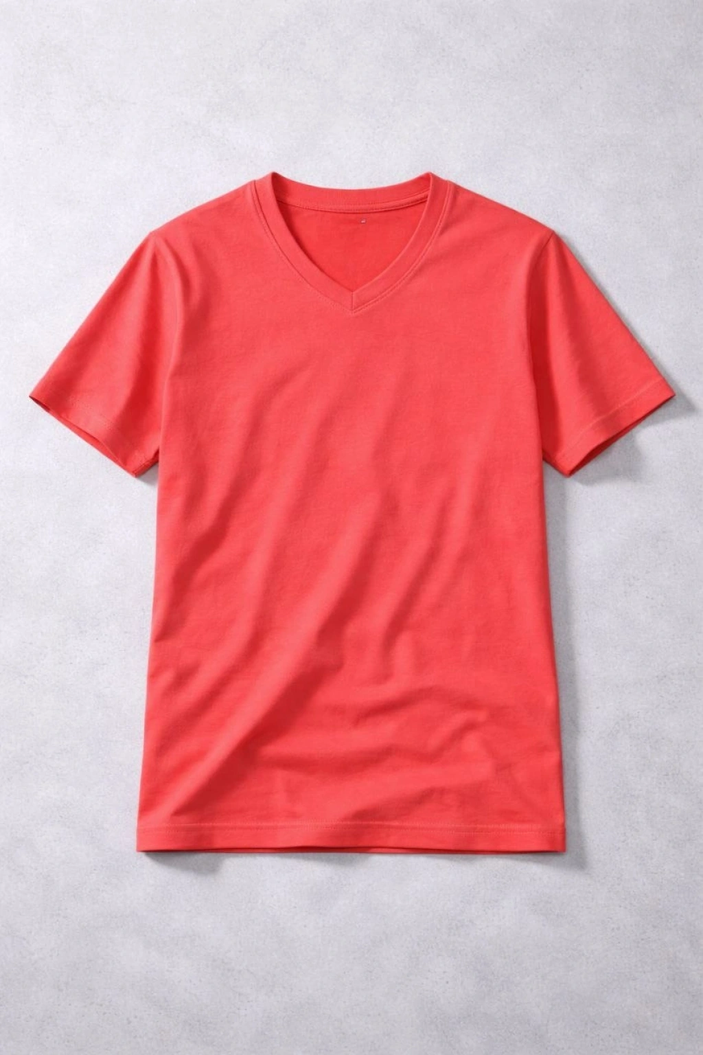Genç Kız Çocuk V Yaka Tişört Yazlık Model Günlük Basic Body - Nar Çiçeği
