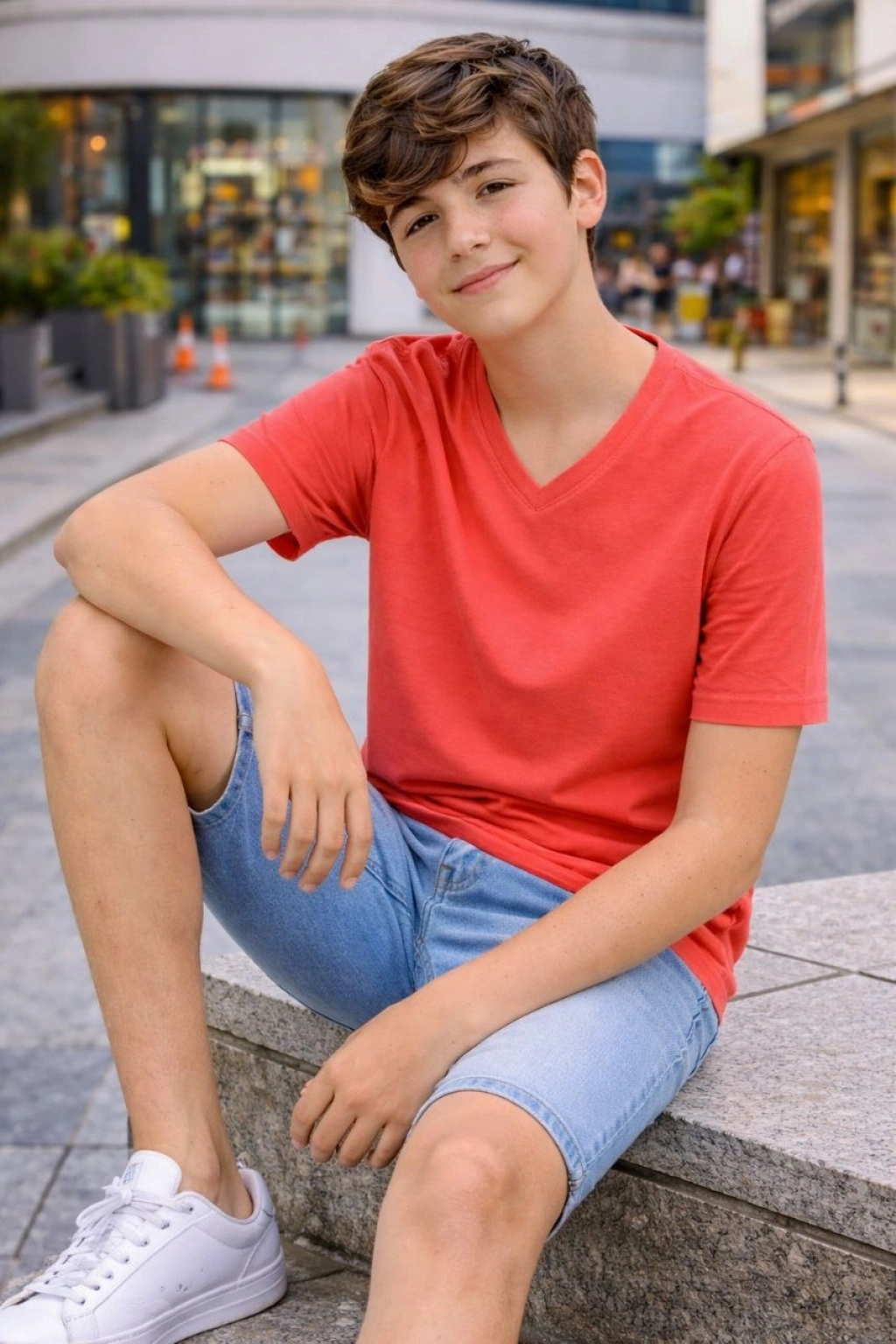 Genç Erkek Çocuk V Yaka Tişört Yazlık Model Günlük Basic Body - Taş