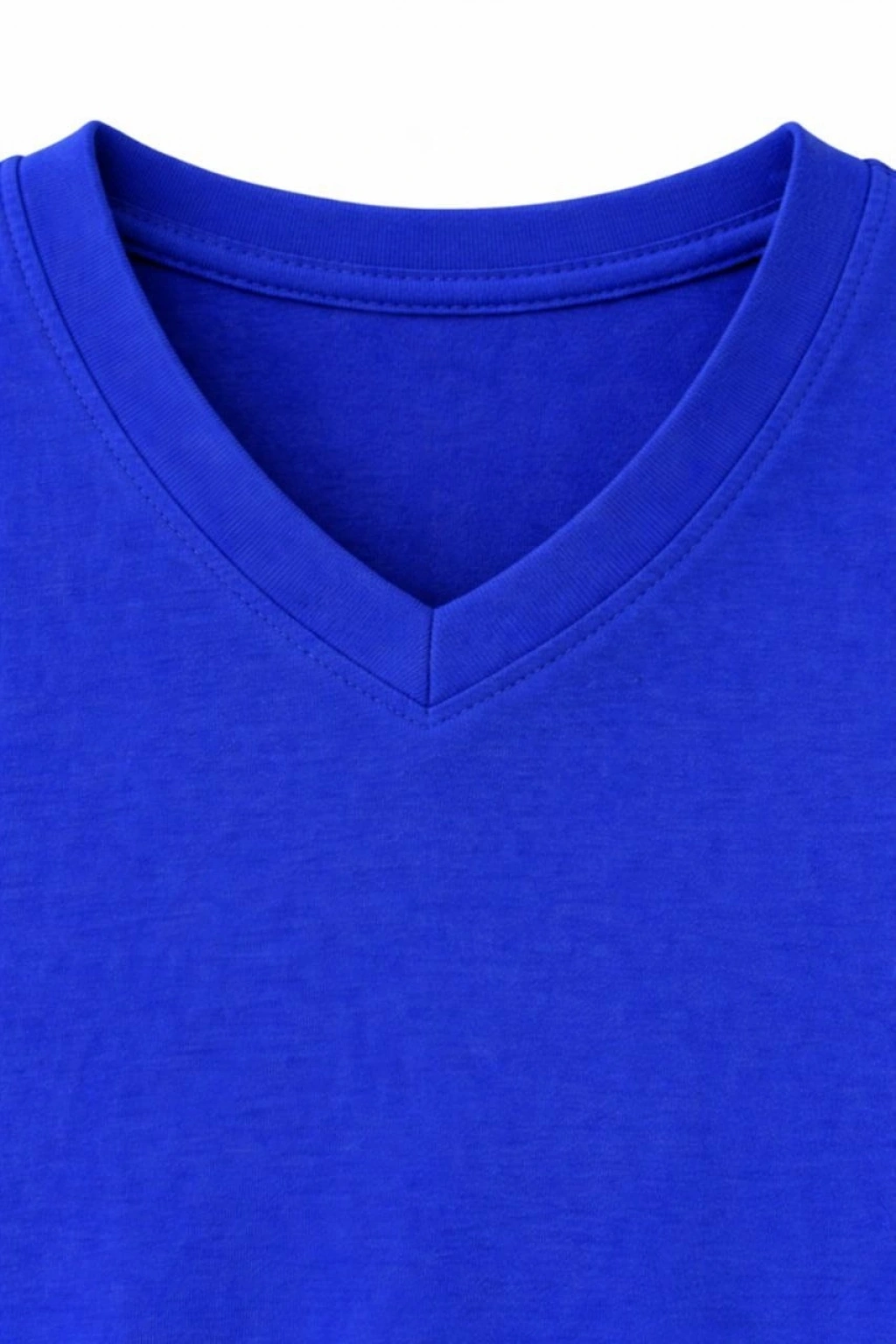 Genç Erkek Çocuk V Yaka Tişört Yazlık Model Günlük Basic Body - Turkuvaz