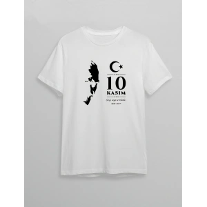 10 KASIM UNİSEX ATATÜRK BASKILI T-SHİRT - BEYAZ