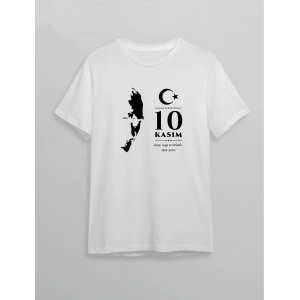 10 Kasım Unisex Atatürk Baskılı T-shirt - Beyaz