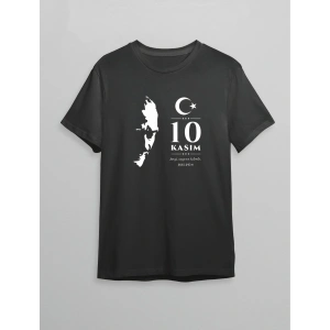 10 Kasım Unisex Atatürk Baskılı T-shirt - Siyah
