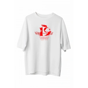 19 Mayıs Unisex Baskılı T-shirt - Beyaz