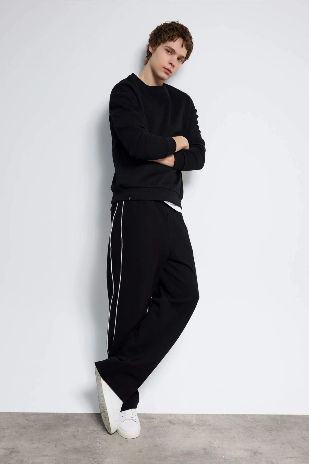 Erkek T-Shirt Bisiklet Yaka Slim Fit dar kesim Likralı Tişört Günlük Basic Body - Siyah