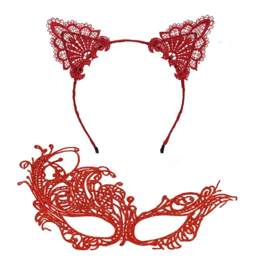 Gizemli Kırmızı Dantel Maske ve Taç Seti 1 No - Kostüm Seti