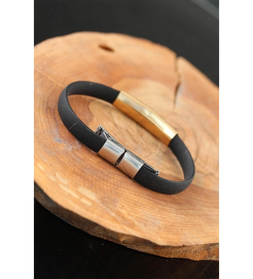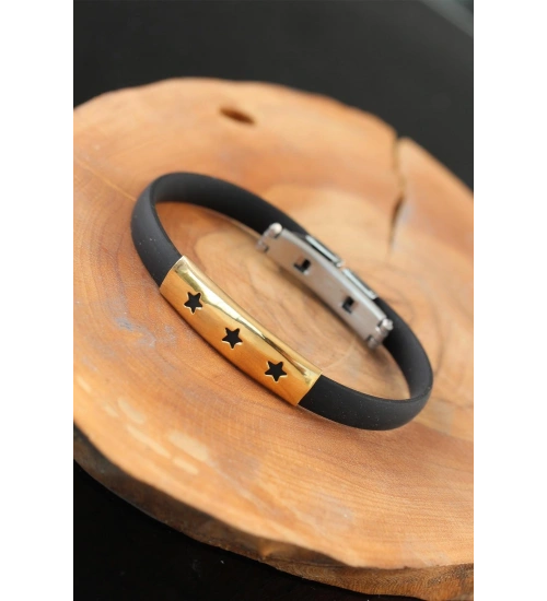 Havalı ve şık olmak için Gold Renk Çelik Yıldızlı Tasarım Siyah Renk Silikon Erkek Bileklik modeli uygun bir seçim olacak.