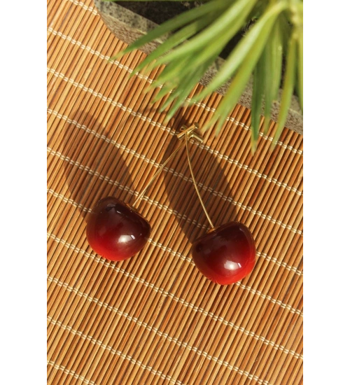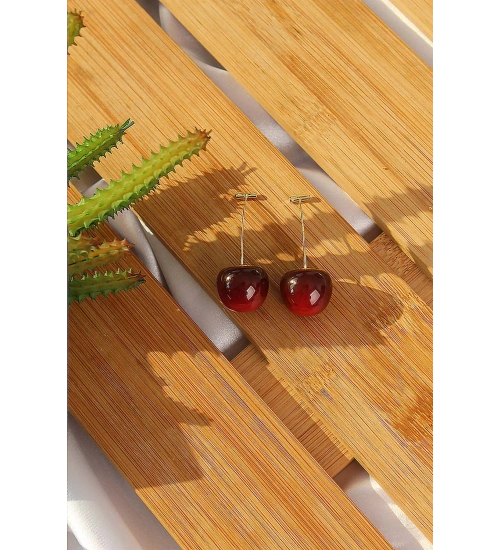 Gold Renk Kiraz Model Kadın Küpe