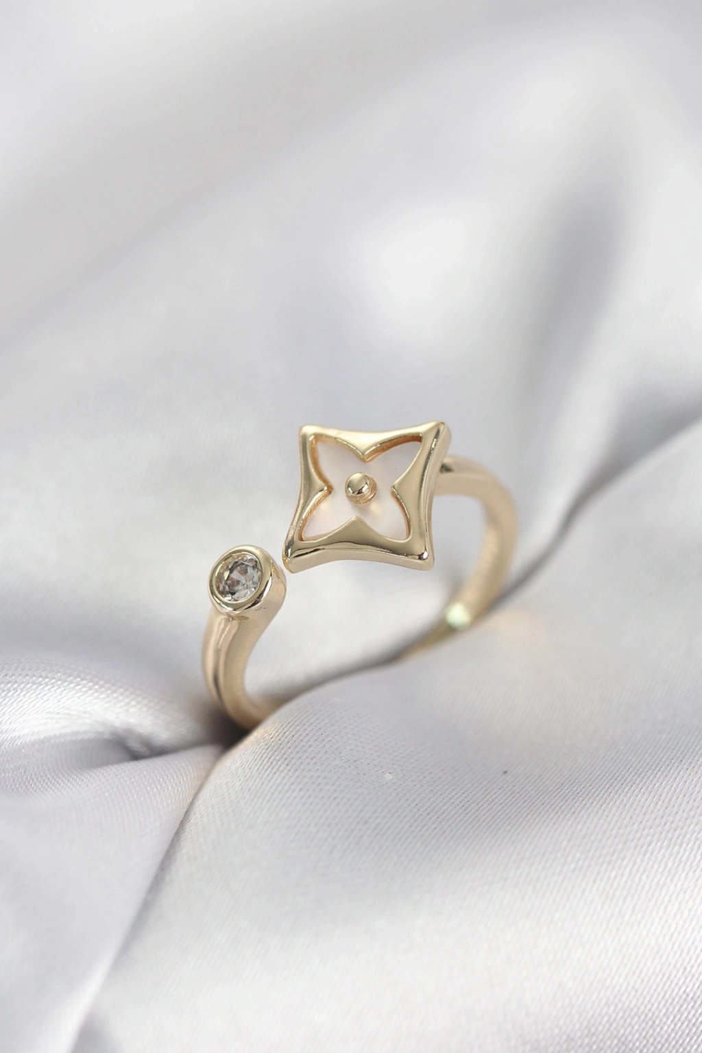 Gold Renk Köşeli Yonca Model Zirkon Taşlı Kadın Yüzük