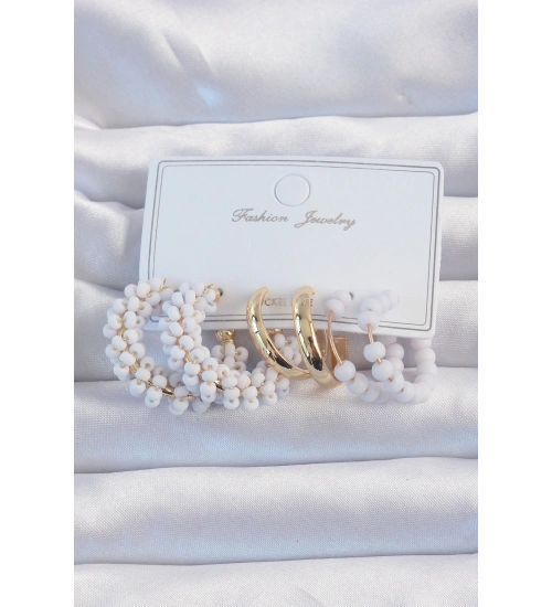Gold Renk Lila Boncuklu Halka Küpe Seti