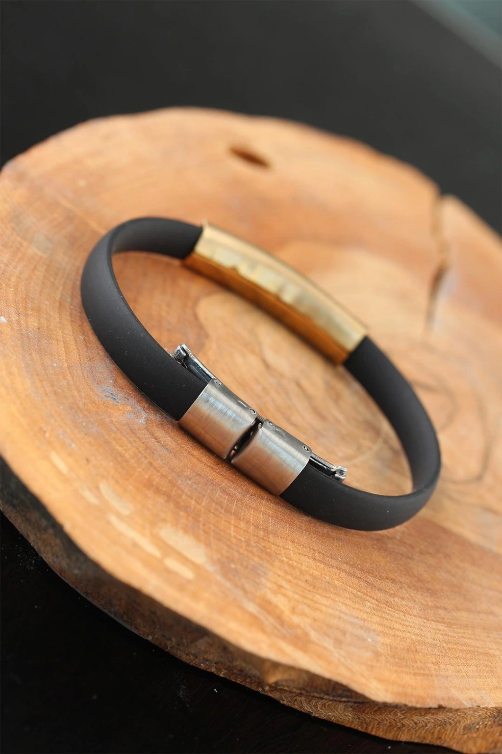 Şıklığa Gold Renk Metal Ay Yıldız Tasarım Siyah Renk Silikon Erkek Bileklik ile adım atın.
