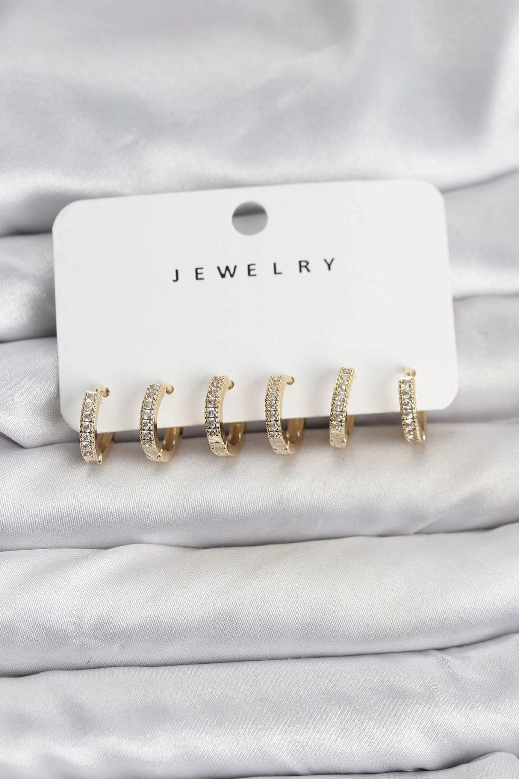 Gold Renk Pirinç Zirkon Taşlı Halka Kadın Küpe Seti
