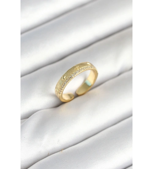 Gold Renk Şerit Zirkon Taşlı Kadın Yüzük