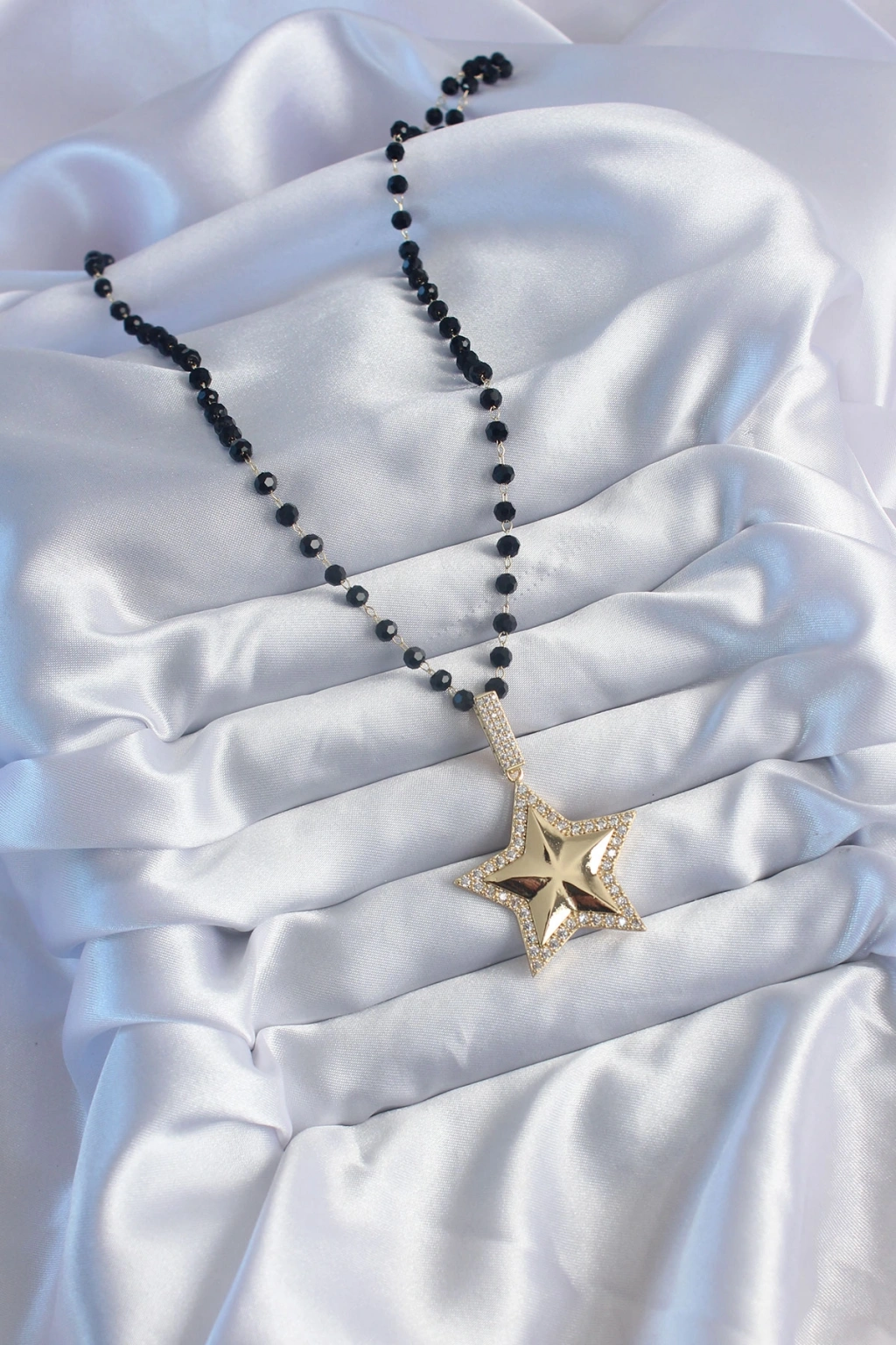 Gold Renk Siyah Boncuk Zirkon Taşlı Yıldız Model VİP Seri Kadın Kolye
