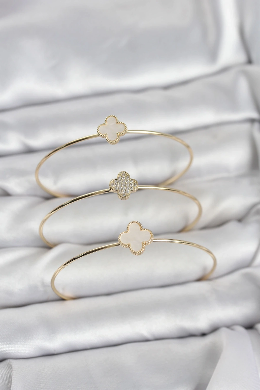Gold Renk Yonca Model Zirkon Taşlı 3'lü Kadın Bileklik Kombini