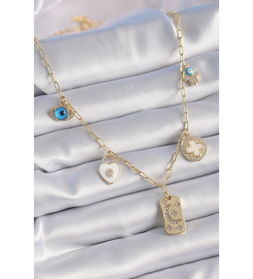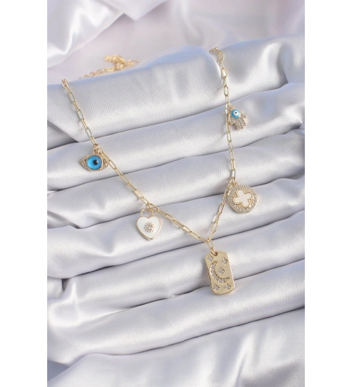 - Ürün materyali pirinçtir. - Ürün zincir uzunluğu 45cm dir. - Dikkatli kullanımda kararma, renk atma olmaz. - Ayrıca teninizin bijuteri , kaplama ürünleri kullanmaya uygun olması gerekmektedir. (Bazı tenlerin karartma yaptığı unutulmamalıdır.)- Sağlıklı ve mutlu günlerde kullanmanız dileğiyle…
