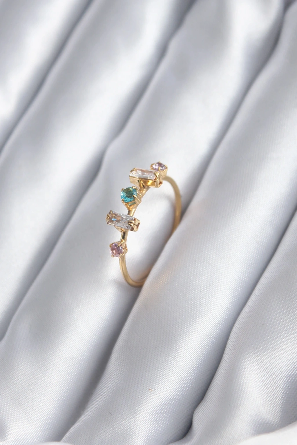 Gold Renk Zirkon Taşlı Renkli Zirkon Taşlı Kadın Yüzük