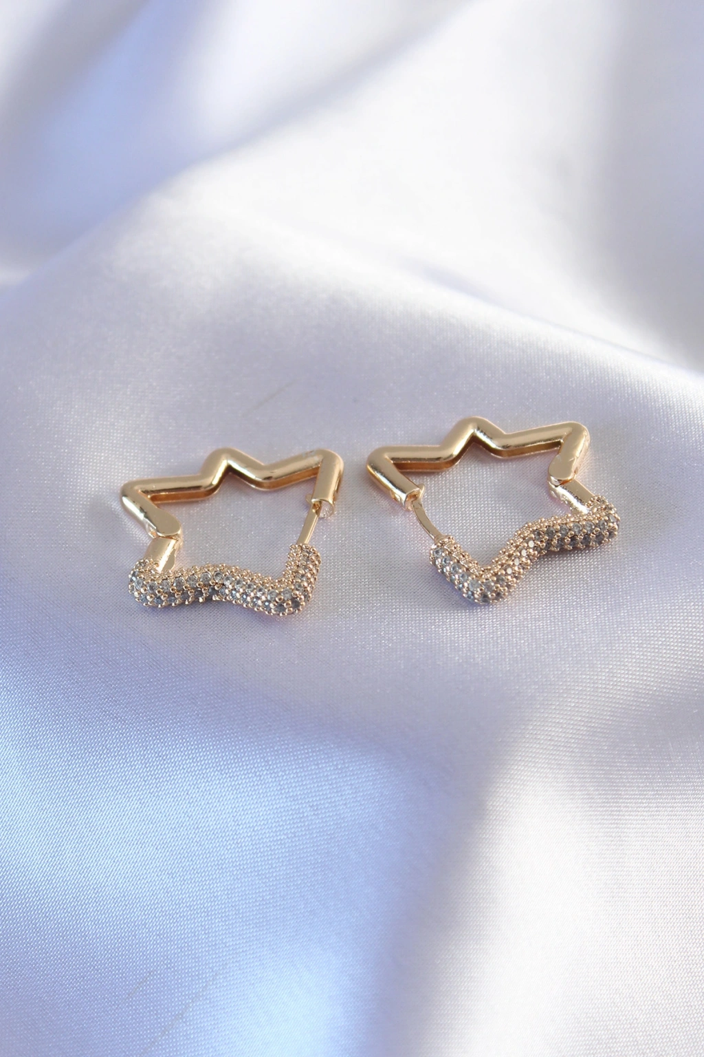 Gold Renk Zirkon Taşlı Yıldız Model Kadın Küpe
