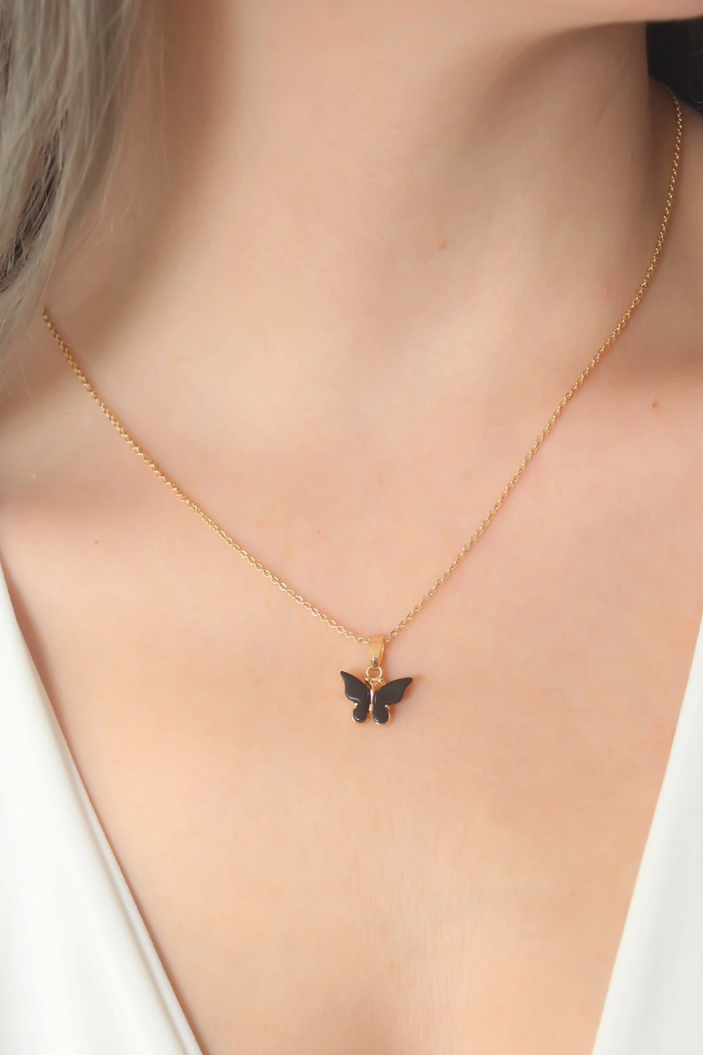 Gold Siyah Renk Kelebek Figür Kadın Kolye