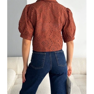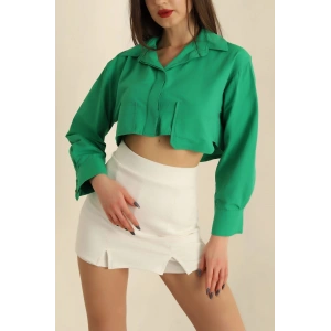 Sıfır kollu bağlamalı crop gömlek beyaz s255359