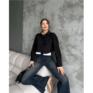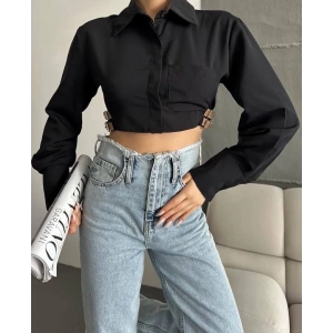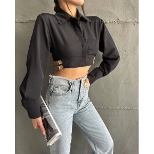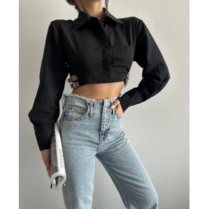Sıfır kollu bağlamalı crop gömlek siyah s255359