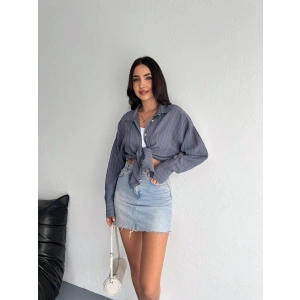 Kemer cepli keten crop gömlek siyah s255350