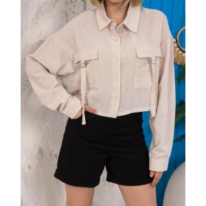 Kemer cepli keten crop gömlek krem s255350