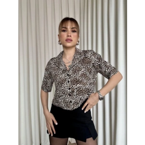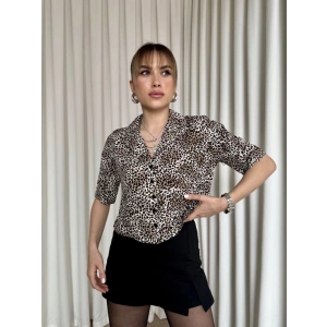 Leopar desenli crop gömlek