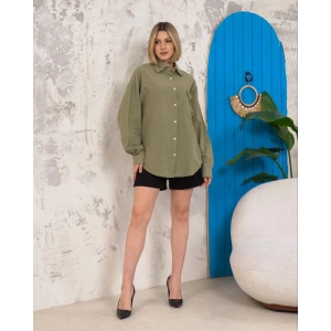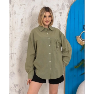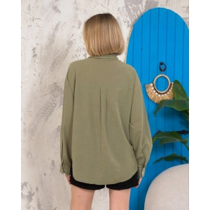 Relax fit keten gömlek haki s255349