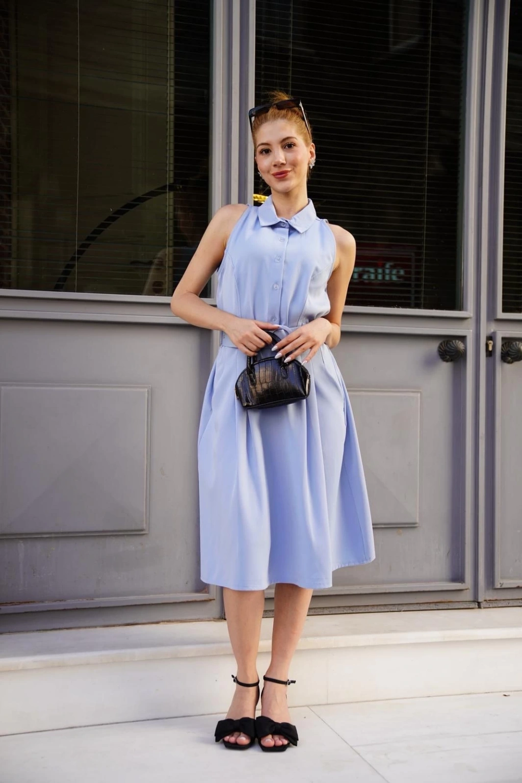 Askılı ch kumaş düğmeli elbise pudrabeyaz h265007