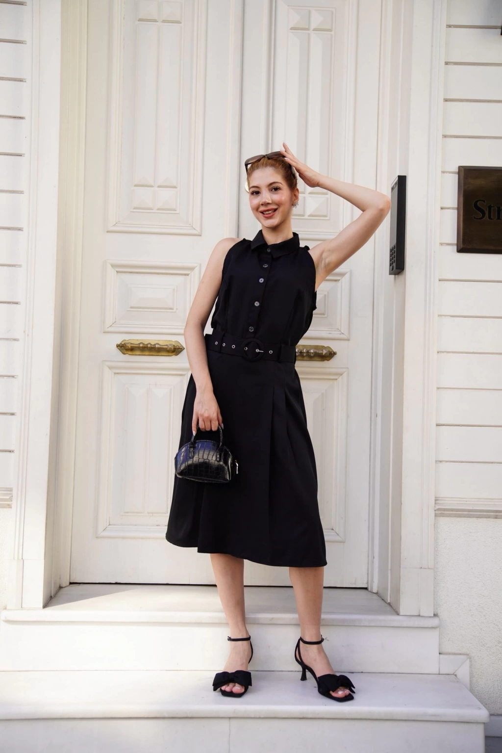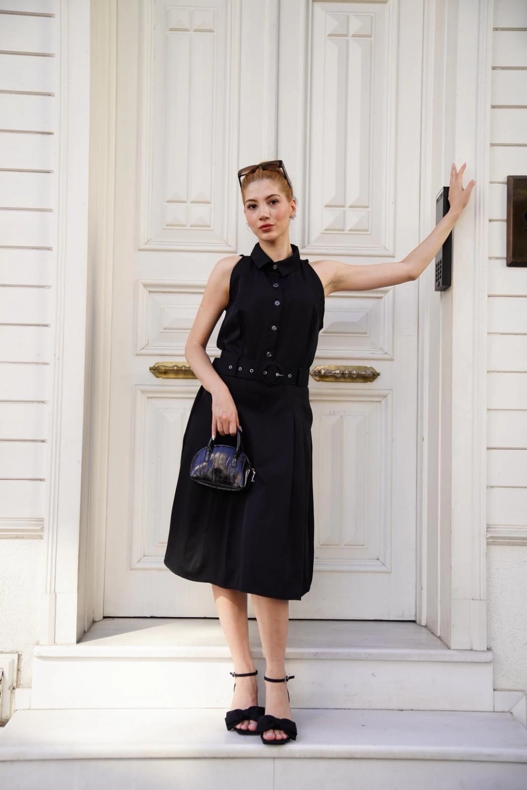 Askılı ch kumaş düğmeli elbise siyahbeyaz h265007