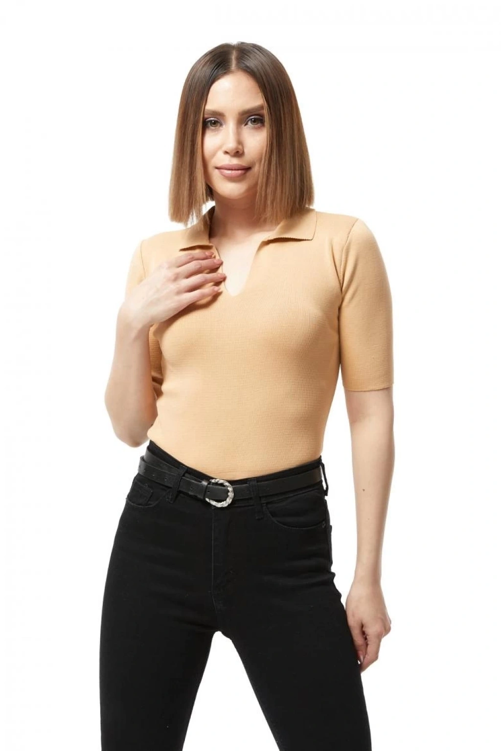 Fitilli Bisiklet Yaka İkili Bluz Pembe T4341
