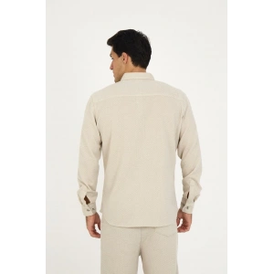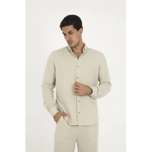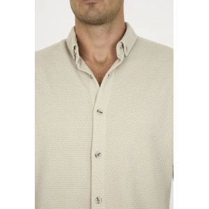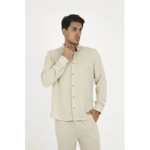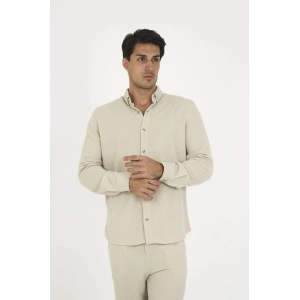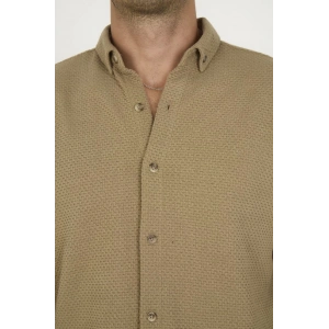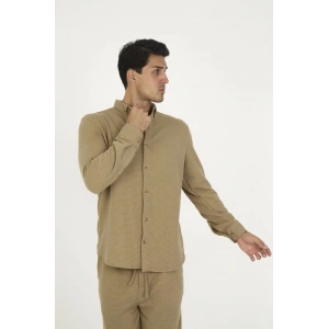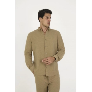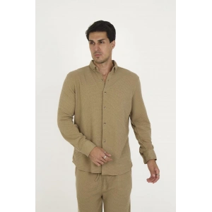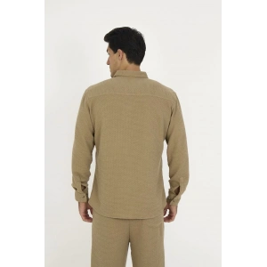 Düğmeli Tam Kalıp Uzun Kol Jakar Gömlek - Kahverengi
