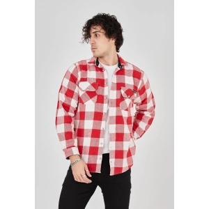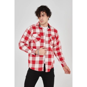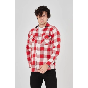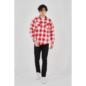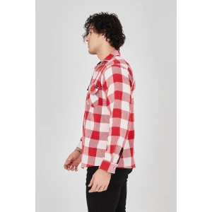 Erkek Oduncu Gömlek – Uzun Kollu, Şardonlu Kumaş, Kareli Desen, Regular Fit, Manşetli, Çift Cepli, Rahat Günlük Bahar & Kış Stil - Pembe