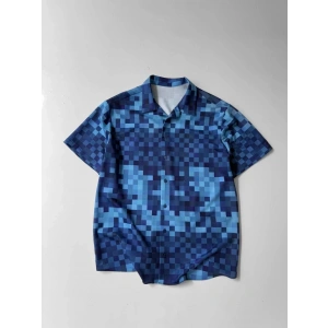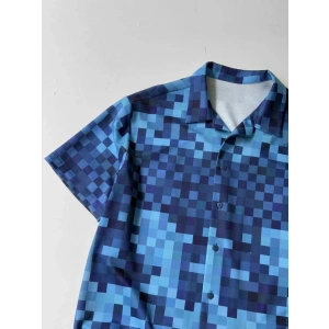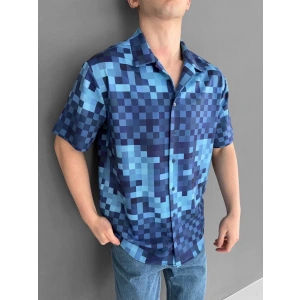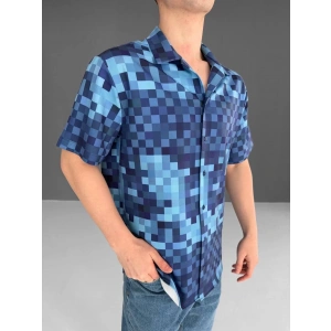 İki İplik Kumaş Baskılı Gömlek - Mavi
