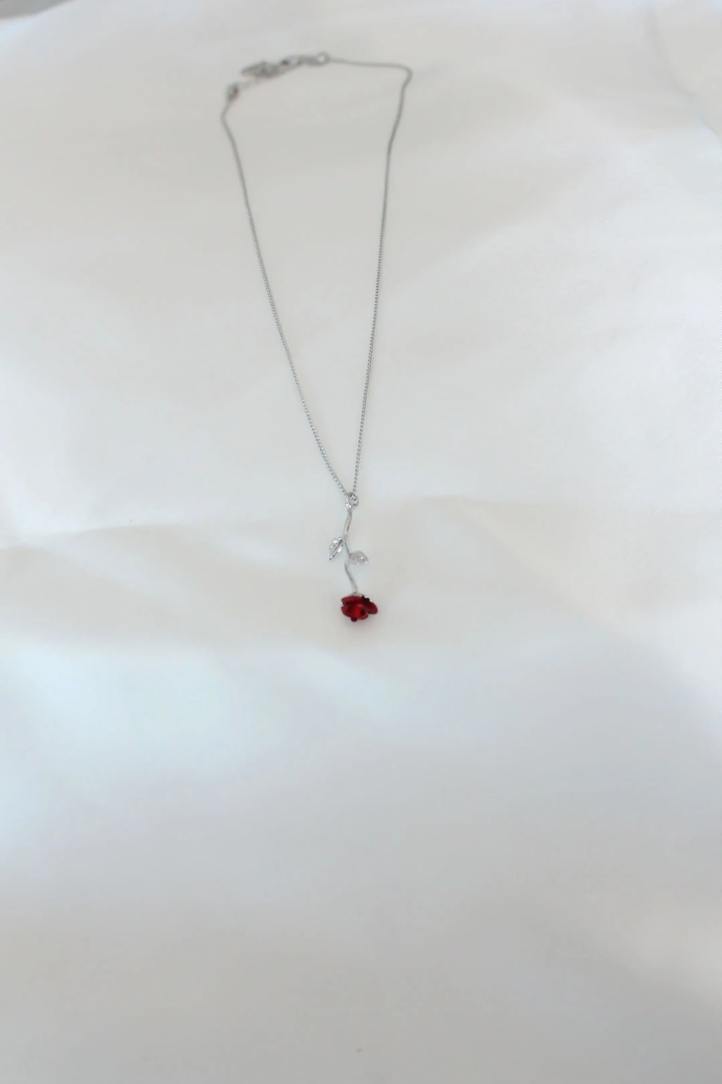 Gümüş Kaplama Kırmızı Gül Figürlü Kadın Kolye
