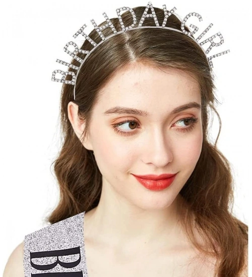 Gümüş Kristal Taşlı Birthday Girl Doğum Günü Tacı İthal Ürün A Kalite 17x16 cm