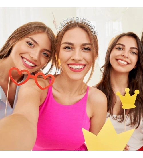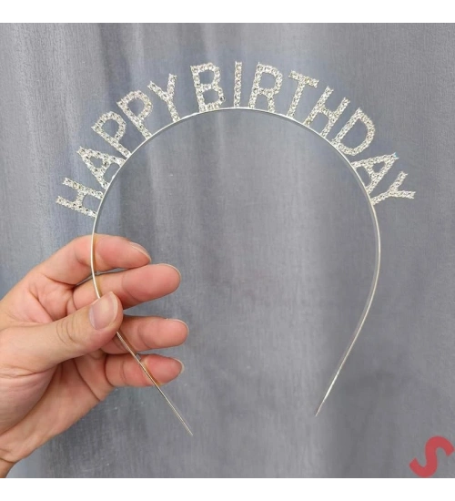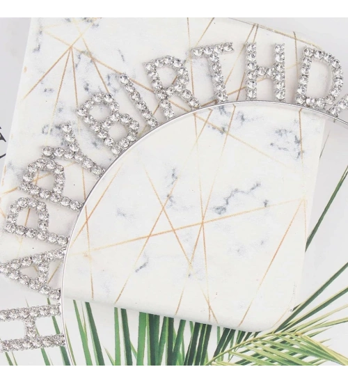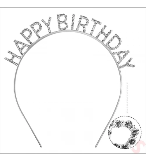 Gümüş Kristal Taşlı Happy Birthday Doğum Günü Tacı İthal Ürün A Kalite 17x16 cm