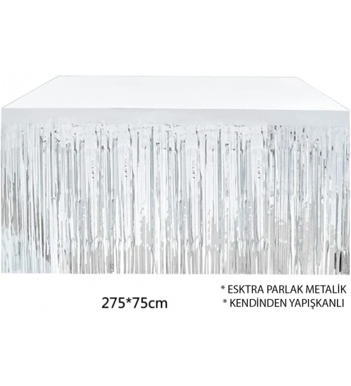Gümüş Metalize Masa Eteği 275x75 cm – Kendinden Yapışkanlı