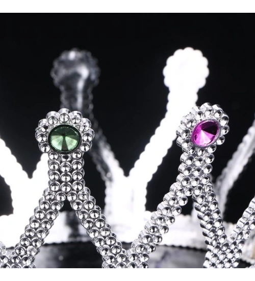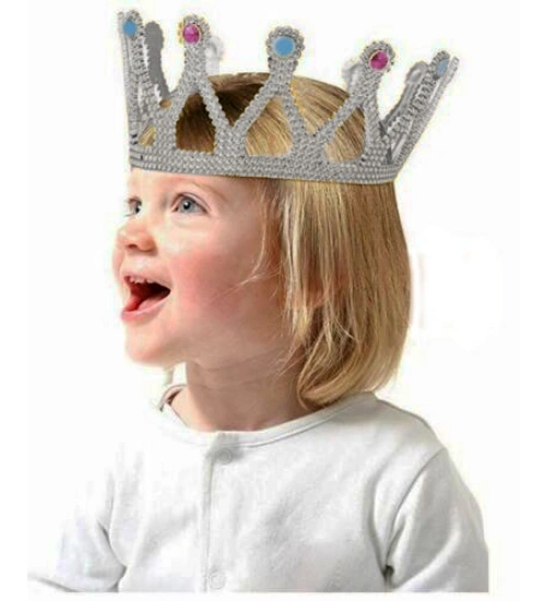 Gümüş Renk Çocuk ve Yetişkin Uyumlu Kraliçe Tacı Prenses Tacı 8X25 cm