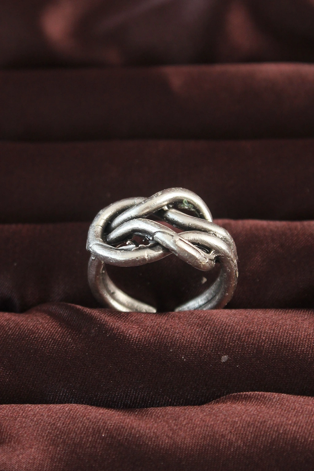 Gümüş Renk Düğüm Model Ayarlamalı Erkek Yüzük